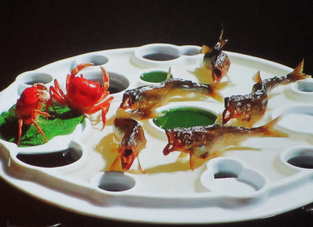 蟹や鮎で季節感をたっぷりに表現している