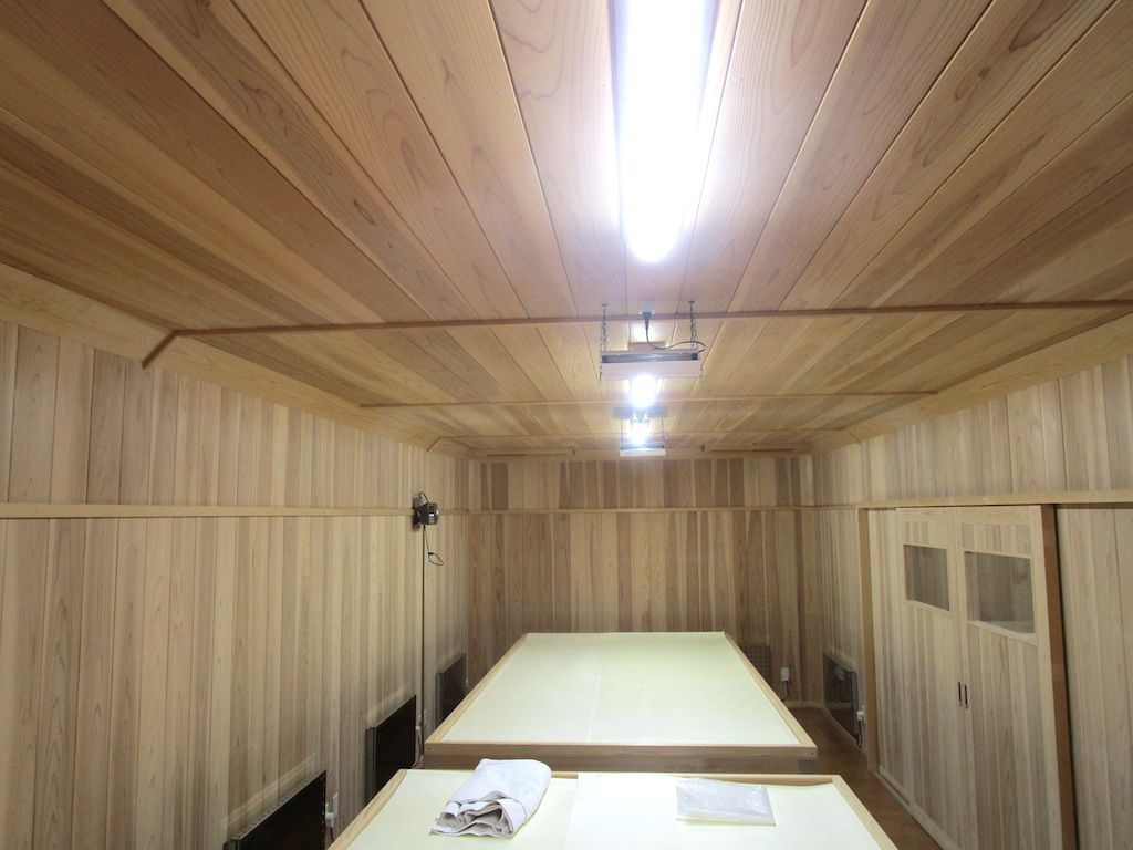 室の木材には一年以上乾燥した秋田の無節の杉材を使用されている