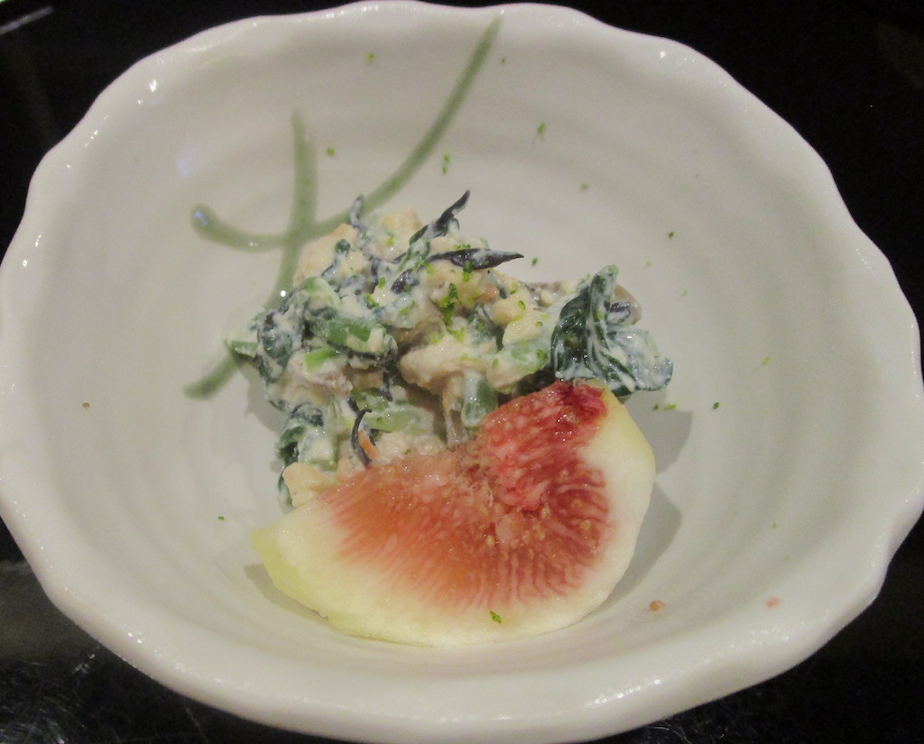 ごはん,酒 花浅葱(宮崎市) 2025年9月21日 / まだ残暑が厳しいが、朝夕にようやく秋の気配を感じるようになった 今日は花浅葱のカウンターにいる いつもご主人の料理の手さばきを見るのも楽しみである まずは鰆青しそ割酢かけ 椀物は里芋とオクラの卵寄せ 此処の出汁をいただくと体に染み込んでいく感覚を覚える それほど滋味深い 小松菜の白和え、いちじくの彩りも良い モロヘイヤと原木シイタケの天婦羅 土鍋ご飯が実においしい 最後はアイスと紅茶 豊かな味わいをたまにはお昼に頂くのも体に良い! 次の予約をして店を出た